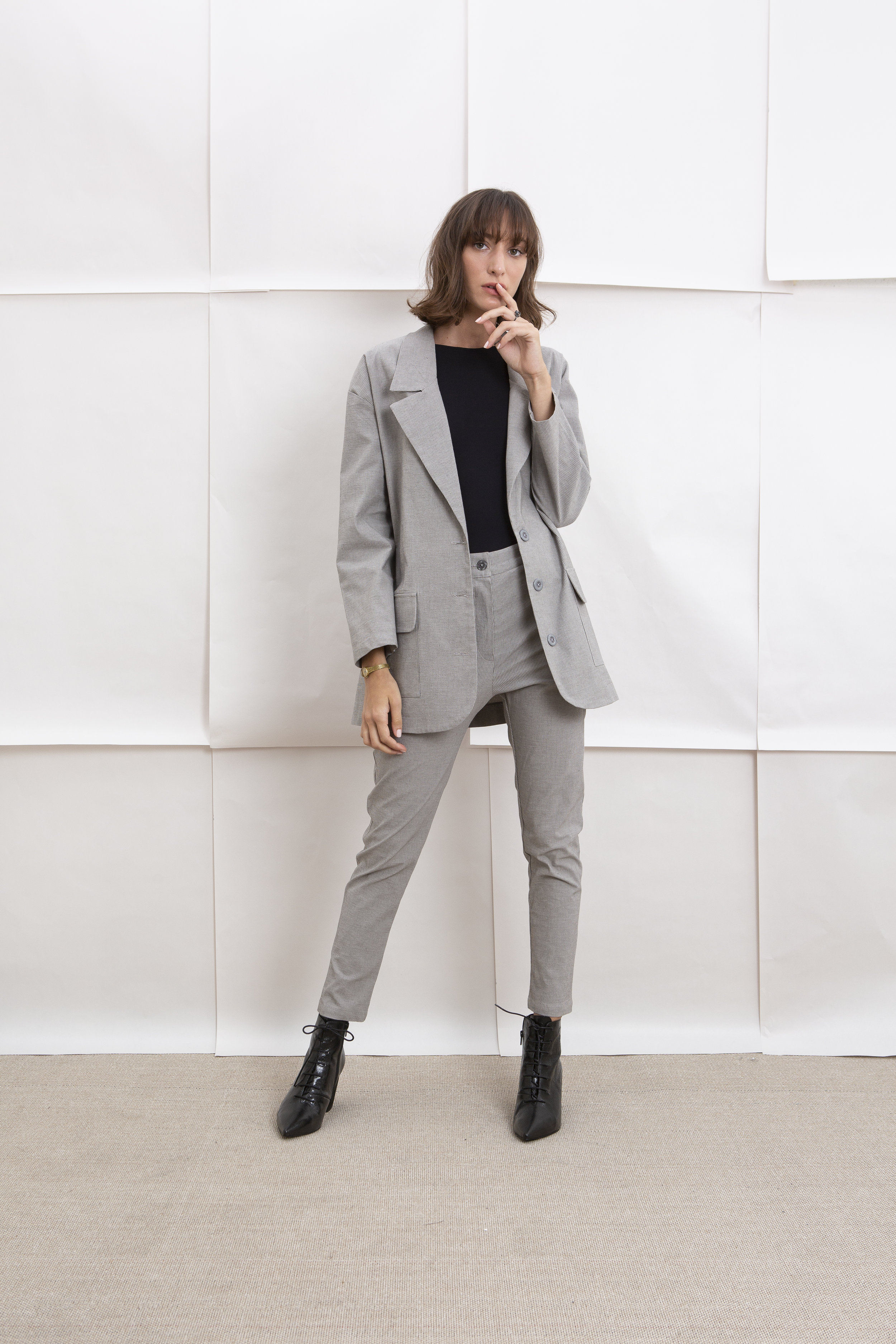 straight cut with big cutaway collar. loose shape a bit oversize.